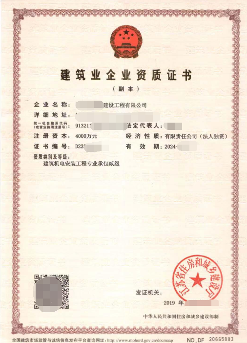 建筑机电安装工程专业承包参级案例